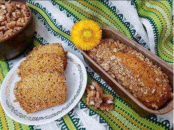 Немецкий тыквенный пирог - Кекс Рецептом поделилась Ярмошенко Виктория Ингредиенты : 200 грамм сахара 1 ч. л. соды 0,5 ч. л. разрыхлителя 0,5 ч. л. мускатного ореха 1 ч. л. корицы немного соли, щепотка 3 ст. л. меда 100 грамм веганского масла 0,5 ст. грецких орехов 225 грамм тыквенного пюре 245 грамм муки или чуть...