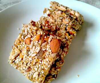 Энергетические батончики рецепт - перекус в дорогу Ингредиенты: 1 стакан миндаля (или любой другой орех, замоченный предварительно на ночь) 1 стакан овсяных хлопьев 1 стакан изюма 1 стакан семечек 0,5 стакана кунжута 50 мл сиропа кленового, или топинамбура, или любого другого подсластители 200 грамм яблочного пюре (или 1 стакан кураги +...