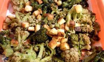 Постные блюда с тофу - овощи запечённые в духовке Ингредиенты: цветная капуста брокколи тофу (панир) количество всех продуктов "на глаз" :) сколько есть столько и используем:) - специи: асафетида , черный молотый перец, черная соль , прованские (по вкусу Приготовление: Брокколи и цветную капусту разделяем на соцветия,...