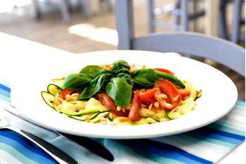 Салат со свежим цукини Ингредиенты: 1 средний кабачок цукини 2 средних помидора горсть кедровых орешков зелень базилика (количество по личным предпочтениям) оливковое масло черная соль Приготовление: Молодой кабачок цукини нарезаем тонкими ленточками Помидоры нарезаем дольками Выкладываем на блюдо кабачки, помидоры,...