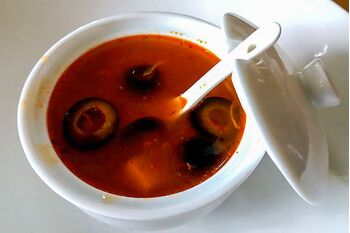Суп солянка постная Ингредиенты: (на 3 литра) 5-6 шт. средних картофелин 1 средняя морковь 3 ст.л. томатной пасты 100 - 150 гр. веганской колбасы (можно купить тут ) 2 маринованных (1 соленый) огурца 1 лавровый лист 1/2 стакана рассола от огурцов 15 шт. маслин соль, черный перец - по вкусу 2 ч.л. сахара 1 ч.л. копченой...