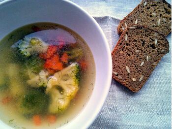 Овощной суп диетический Ингредиенты: болгарский перец брокколи брюссельская капуста горошек зеленый все овощи берем примерно по 50 грамм, набор овощей может быть любой:) 1-2 шт. средние картошки 1 маленькая морковь 1 л воды 1 ч.л. соли черный перец горошком (3-4 шт.) 1 шт. лавровый лист Приготовление: В...
