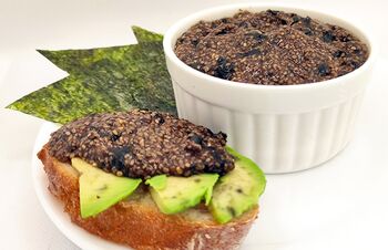 Чиа, икра черная - как готовить Ингредиенты для черной икры: 3 ст. л семян чиа 2 листа нори (водоросли) Вода 5 ст. л Соевый соус 2-3 ст. л Масло льняное холодного отжима 3 ст. л Черная соль 0.5 ч. л Приготовление (икра по вегану): сначала соединяем воду и соевый соус нори измельчить или мелко нарезать...